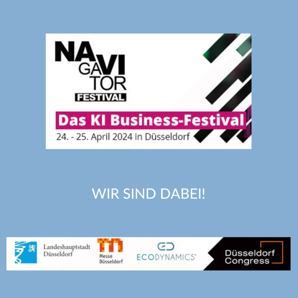 Vom 24. - 25. April 2024 findet im CCD Congress Center Düsseldorf das Navigator Festival statt.Hier werden wertvolle Kontakte geknüpft und das Event bietet die Möglichkeit, die regionalen Partner, Netzwerke und Institutionen kennenzulernen, die Unternehmerinnen und Unternehmer auf dem Weg durch die digitale Transformation unterstützen können.