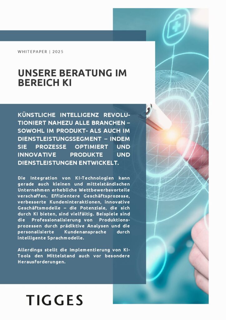 Digitalisierung und Künstliche Intelligenz revolutionieren nahezu alle Branchen und bieten kleinen und mittelständischen Unternehmen (KMU) erhebliche Wettbewerbsvorteile durch effizientere Prozesse und innovative Geschäftsmodelle. Im Zentrum stehen dabei der Einsatz von KI-Tools, Vernetzung, internetbasierte Dienstleistungen und datengetriebene Geschäftsmodelle (Industrie 4.0), die zu hochflexiblen Wertschöpfungsketten und neuartigen Geschäftsmodellen führen. Gerade kleine und mittlere Unternehmen, die mit flachen Hierarchien flexibel agieren, haben die besten Voraussetzungen dafür, durch neue Technologien ihre Geschäftsmodelle weiterzuentwickeln und neue Wege zu gehen, um ihre Wettbewerbsfähigkeit sicherzustellen.